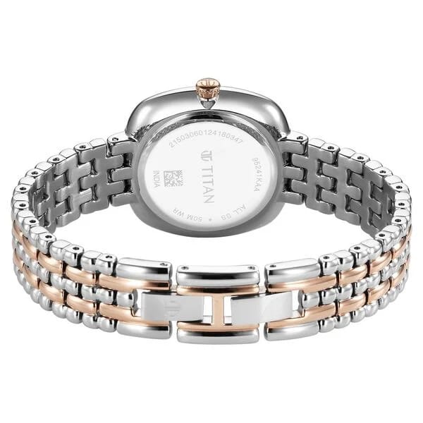Elevate your elegance with the Titan Woman Mother of Pearl White watch. Featuring a luminous mother of pearl dial and a delicate chain strap, this timepiece blends refined beauty with subtle sophistication. Perfectly designed to complement your style, it offers timeless charm for every occasion.